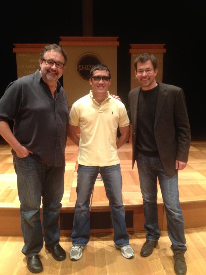 Producer Don Hahn, with US Army veteran Steve Baskis, and Director Michael Brown at the Pritzker Military Library & Museum